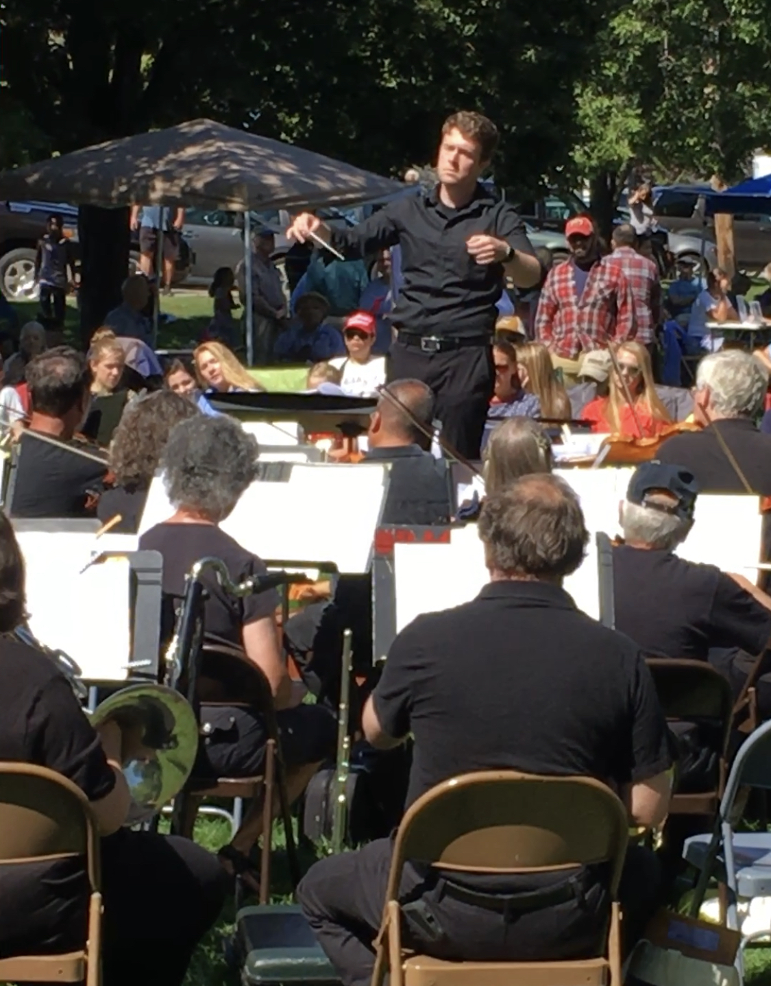 In September, I got on a plane (for the first time in nearly 2 years) and flew up to my home state of Maine, where I got to conduct the Midcoast Symphony Orchestra in their performance of “One Day in September,” one of my earliest pieces (dating back to 2002!). This piece commemorates and memorializes the events of September 11th, 2001, and the piece was programmed on a special outdoor performance in Brunswick, Maine. It was a real treat getting to conduct this lovely orchestra, and of course any opportunity to get on a plane is a treat!