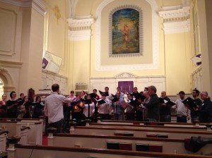 Also at 7:30 on Saturday, the Notre Dame High School Chorus and Concert Band will be presenting a concert at Battell Chapel in New Haven. The Concert Band, directed by David Roach, will premiere my new piece, “Fantasy on American Spirituals,” which is an arrangement of “Let us break bread together” and “Were you there.” I’ve been lucky enough to attend a few rehearsals for this program, and the band sounds terrific! Also on the program, the NDHS Chorus, directed by my good friend Arianne Abela, will reprise a performance of my setting of Psalm 23, which was commissioned by Notre Dame as part of the same composer-in-residence program. You can watch and hear a beautiful performance of that piece from their December concert here.